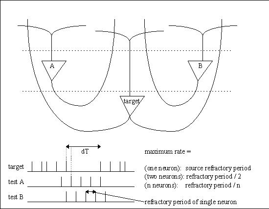 In an architecture where spike times are important, one can ask oneself “what is the smallest interval of time that can be resolved by a neural network?” If one imagines a neuron firing at maximum rate, the spike times are determined by the refractory period. If we imagine “all” neurons firing at maximum rate, we can stagger the spikes so they occur “dt” apart, and the resulting resolution is then approximately the refractory period divided by the number of neurons. In a human brain where the refractory period is about 1 msec and there are about 20 billion cortical neurons, this turns out to be a tiny fraction (about .05) of a picosecond.
