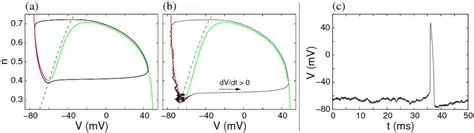 It is helpful to visualize the membrane behavior in phase space, and see how it relates to the voltages that we actually measure with an electrode.