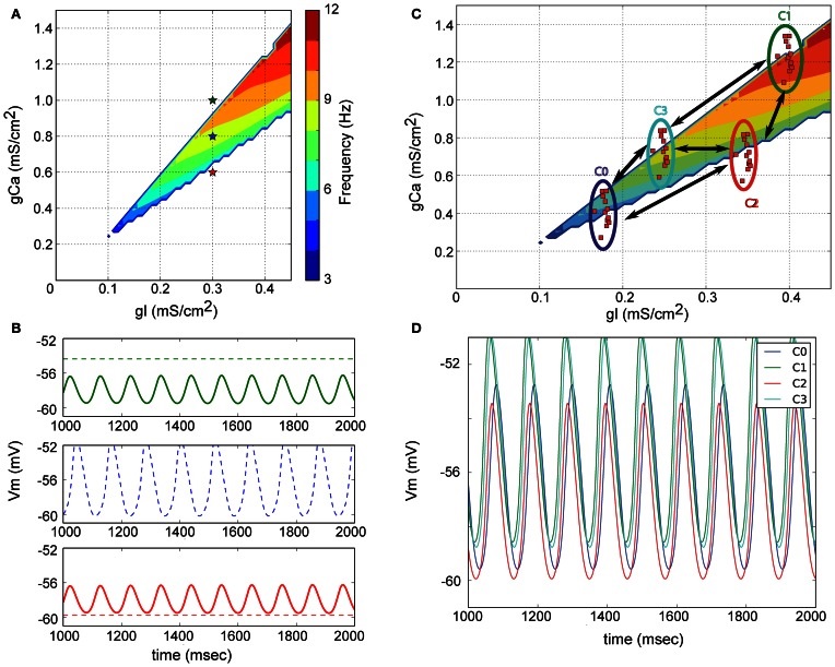 Such subthreshold activity is important because it interacts with other periodic behavior in the network, as we'll see on a subsequent page when we discuss modulation. Neurons inhibited by the neurotransmitter GABA often display rebound bursting after the inhibition, and the frequency of action potentials inside the burst is related to the frequency of subthreshold oscillations. And, astrocytes add additional dynamic modes to neuronal systems (Palabas et al 2023).