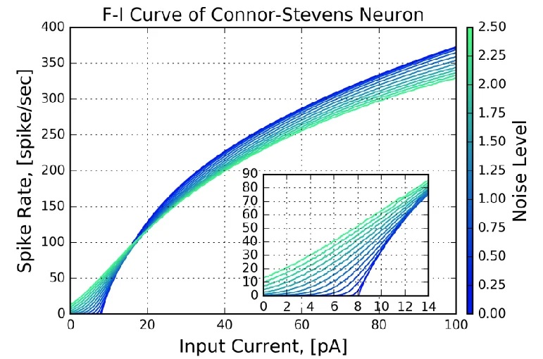 When investigating the brain, models are very helpful. They allow us to explore neural behaviors without sacrificing animals or invading their nervous systems. We would like to understand how behaviors can be precisely timed after just one example. For instance if you're a child learning to play basketball, and someone shows you how to make a basket, you can probably do it all by yourself after one or two attempts. Early Model NeuronsModeling of neurons for computational purposes began with McCulloch & Pitts in 1942. They considered a binary neuron whose state could be either firing, or not firing. The neuron integrates its inputs (as a weighted sum), and if the result is over the threshold the neuron fires, and if it's under the threshold it doesn't. The original threshold function was the Heaviside step function, which is not smooth and can not be easily differentiated. The ideas embodied in the McCulloch-Pitts neuron later became the basis for the early learning machine called the Perceptron (Rosenblatt 1958). In the Perceptron, the synaptic weights are adjusted based on an error that is determined from the data. The Perceptron essentially "fits" the data to a set of linear parameters. Unlike the McCulloch-Pitts neuron, the Perceptron uses neurons with a sigmoidal threshold function, which is differentiable and therefore errors can be passed backward through the network and assigned to their sources in proportion to their contributions.![]() Simple neurons like these have severe limitations, and based on what we've already seen they're inadequate to mimic biological behavior. Nevertheless they still have significant computational abilities when they're wired into populations. The Perceptron is able to perform "linear separability"on a dataset, meaning it finds the slope and intercept of a straight line that partitions the dataset. More neurons simply means more lines, the end result is a combination of linear partitions. Linear regression is probably the single most common activity in all of statistics, so this capability is useful. However it doesn't work on all datasets, and the Perceptron is a bit of a one-trick pony in terms of its neural behavior. Unfortunately Frank Rosenblatt passed away before he could counter Marvin Minsky's points about Perceptron limitations, but before he died he saw his invention being used in real time national security applications. Even binary neurons can be very powerful when wired into populations and given the right kinds of plasticity. ![]() In the above figure the inputs I are multiplied by the synaptic weights W and integrated over the dendritic surface to arrive at a sum S, which is added to a "bias" term b representing noise or a baseline input level. The difference between this neuron and the McCulloch-Pitts neuron is that the threshold function f is sigmoidal (S-shaped) instead of being a step. When this threshold function can be differentiated, an error occurring at the output O can be passed back through the threshold and the contributions of each input to the error can be determined. Then, the synaptic weights can be updated to reflect the new error information. The process of passing the error in the opposite direction through the threshold function is called "back propagation". Simplifying the Hodgkin-Huxley ModelReal neurons have more than two parts, more than just an integrative portion and a spike generating portion. The properties of a neural membrane vary according to its location, for example calcium channels are present in the dendritic tufts of cortical pyramidal cells, and in the basal dendrites, but not in the shafts of the apical dendrites. In general ion channels are carefully localized along the neural membrane, and this is true everywhere, not just in the synapses. Morris-Lecar ModelOne of the variations of Hodgkin-Huxley that students should be familiar with (because it's widely cited and widely used) is the Morris-Lecar model. This is a somewhat simplified version of H-H that still shows bifurcations and spiking activity.![]() (figure from Rowat & Greenwood 2014) The drawback of the Morris-Lecar model is it only uses two conductances (calcium and potassium), and it has some significant computational artifacts, both at high frequencies and at certain particular frequencies.Fitzhugh-Nagumo ModelAnother model neuron variation that is frequently found in the literature is the Fitzhugh-Nagumo model. This model is an abstraction, rather than directly modeling ion channels. It does not display any bursting behavior, nor can it model subthreshold dynamics.![]() (figure from Nagumo et al 1962) Any of the above simplified model neurons can still be useful if we're just trying to replicate simple network or neuron behavior. However the simplified dynamics can create computational artifacts. We would like a simple model neuron that is computationally friendly and can be modified at least to a limited extent, so we can test the effect of various conductances and various geometries.Integrate-and-Fire (Izhikevich) ModelSpike times can be precisely modeled by integrate-and-fire neurons, which are frequently used when modeling TTFS and STDP (please refer to the glossary for the definitions of these terms). Unfortunately this model can create spike trains with arbitrarily high firing frequencies, so one must be careful. There are modifications to this model that allow for setting maximum firing rates (Strack et al 2023).![]() (figure from Izhikevich 2003) A MATLAB tutorial for Izhikevich neurons is given here.Poisson ModelsThere are some models that are "in between" rate codes and spike times, for example they may use a Poisson approximation to estimate spike times from a rate code. Such models are frequently used in oscillator paradigms to conveniently visualize the system attractors. Poisson models are related to gamma distributions, which in turn are related to Bayesian statistics, and gamma functions (which are the integrals of gamma d
