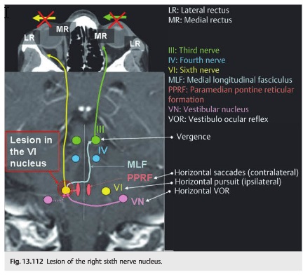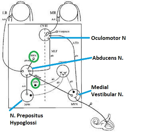 The PMT neurons in the abducens nuclus feeding the cerebellar flocculus are important for gaze holding. Lesions in the PMT can result in nystagmus along both vertical and horizontal axes (Nakamagoe et al 2000).