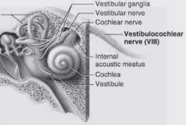 The vestibular nerve (cranial nerve CN-8) has three terminal branches (superior, inferior, and posterior) which innervate the utricle, saccule, and semicircular canals respectively. Moving centrally, they converge in the superior (Scarpa's) and inferior vestibular ganglia. From there they target the vestibular nucleus. There are a few vestibular fibers that target the cerebellum directly, especially the nodulus and uvula of the vermis. These are related to balance and do not primarily affect the oculomotor circuitry.