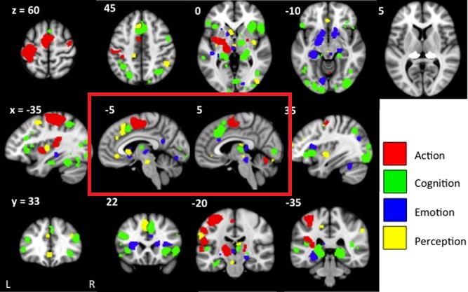 In addition to the control of the oculomotor system, one of the most important outputs of the superior colliculus is to the inferior nucleus of the pulvinar of the thalamus (posterior and central portions). The pulvinar is involved in visual attention. It receives input from the SC, LGN, and many areas of the visual cortex. In turn it is connected into the circuitry in the dorsal attention stream, as well as the anterior and posterior cingulate cortex and the retrosplenial region. The pulvinar combines target and eye movement information from the SC with visual details from the visual cortex. The figure shows some of the areas of cerebral activation related to the pulvinar.