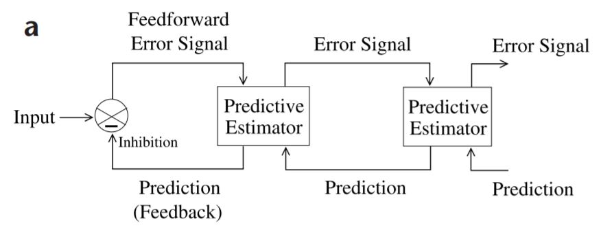Since its popularization in the insightful paper by (Rao and Ballard) the mechanisms around predictive coding have been extended by researchers like Karl Friston, who introduced the concepts of free energy and complexity into the basic paradigm. Free energy, in a neural network, is an indicator of surprisal. It has terms related to errors relative to previous predictions, and complexity related to the simplest possible description of the input.
