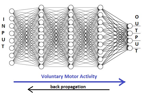 Why Machines Are DifferentIn a nutshell, "artificial" neural networks are different because they have little to no dynamics. As close as machines come to dynamics these days is Poisson modeling of spike rates. The figure shows a feed forward path mapped onto a layered neural network architecture, and the information flow associated with a voluntary motor signal (oriented the same way as the related ERPs). There are some noteworthy differences between this figure and the neural timeline. Can you spot them?
