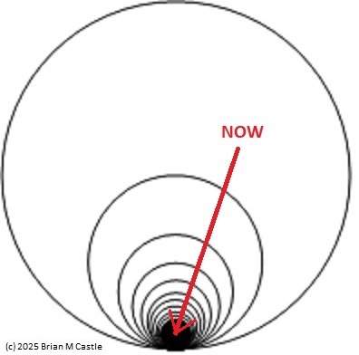 If we draw this on a piece of paper, the result is a Hawaiian Earring construction, where the point of intersection of the loops is “now”, the current moment.
