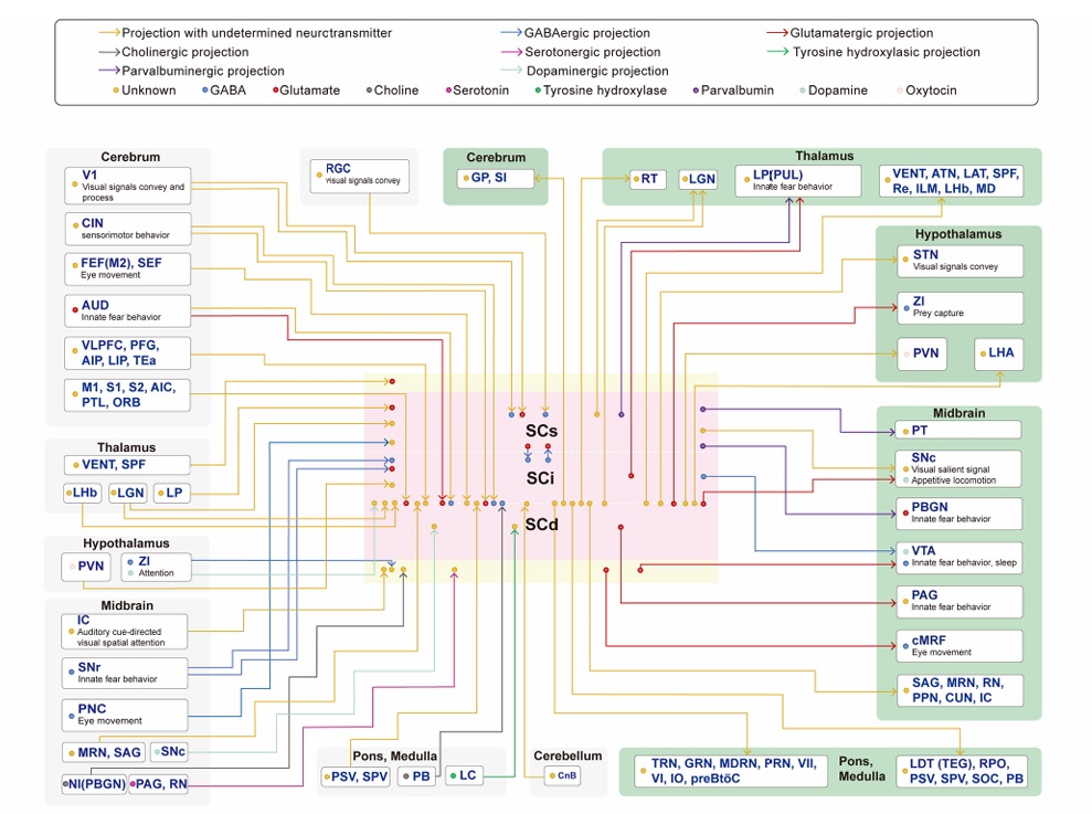 A summary of SC wiring and neurochemistry is shown in the figure.