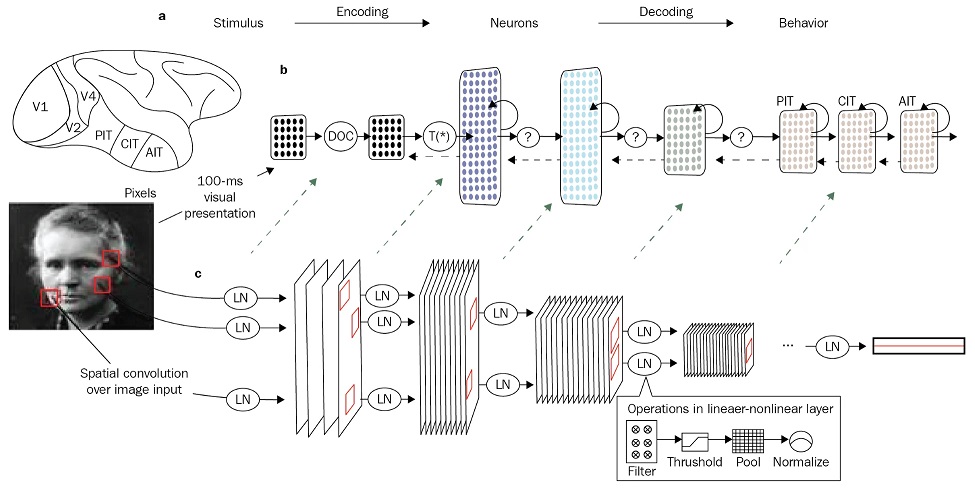 A machine vision network typically involves a long feed-forward path that eventually results in "recognition". An example is shown in the figure.