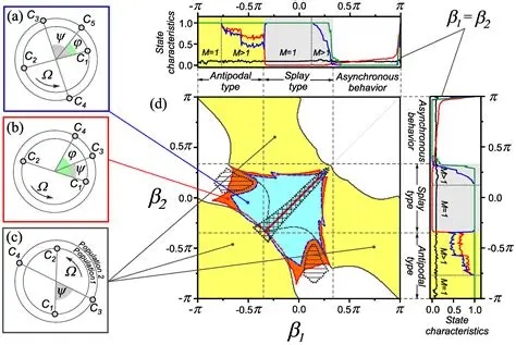 There are extensions of the Kuramoto model, for example the specific case of a bimodal frequency distribution has been solved exactly, for Lorentzian and Gaussian distributions. However the general case leads to a complex set of coupled differential equations that would be impossible to solve in real time with current technology. So we look for other avenues to approach questions like criticality, and one of the very promising avenues is nonlinear thermodynamics, which can be directly applied to neural networks with quantum computing. The complexity of Kuramoto dynamics is shown in the figures.