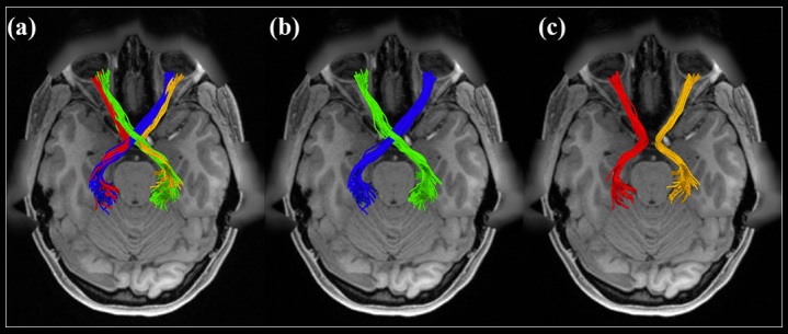 The development of the retino-geniculate system has been modeled by Markowitz et al 2012. In its final form the retino-geniculate pathway is shown below, as visualized by MRI diffusion tractography.