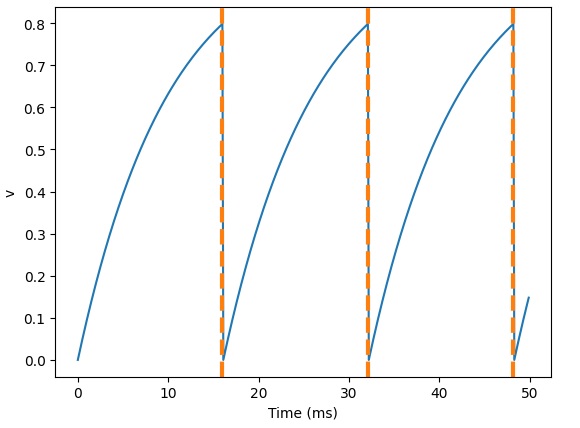 threshold='v > 1', reset='v = 0')